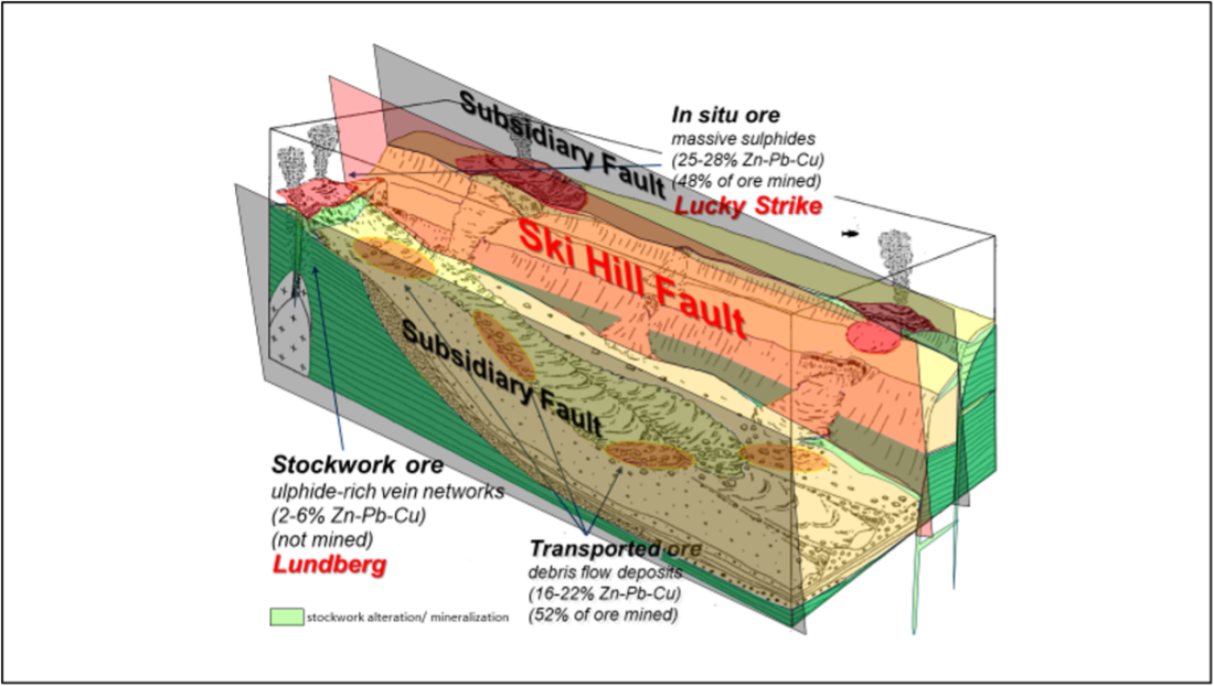 The success of drilling at Two-Level target confirms recent modelling and demonstrates the potential to discover both new high-grade in situ VMS mineralization and transported VMS mineralization that comprised 52% of the previous mining (see Figure 2). The Two-Level mineralization also represents an opportunity to add higher grade resources to expand the adjacent Lundberg deposit.