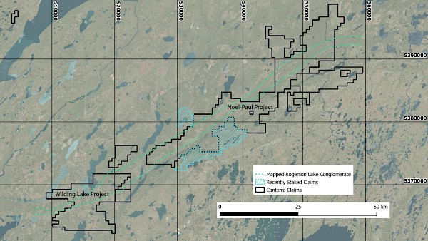 Figure 1. Additional licenses staked by Canterra in 2022 cover prospective areas with favorable geology and are contiguous with the existing Noel-Paul licenses.