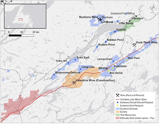 Figure 1. Canterra’s Land Position in the Central Newfoundland Mining District.