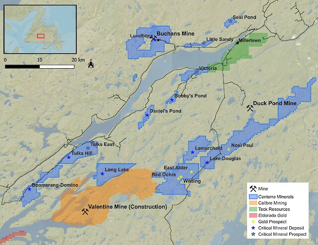 Figure 2. Canterra’s Central Newfoundland Mining District properties.
